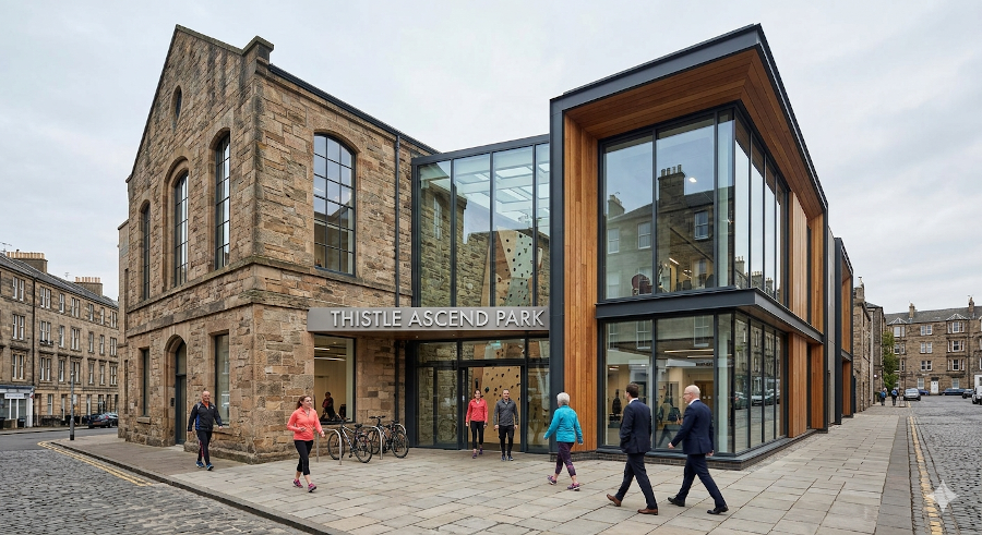 Im Herzen von Edinburgh bietet der Thistle Ascend Park ein einzigartiges Sporterlebnis, das die historische Seele der Stadt mit modernster Architektur verbindet. In einem liebevoll restaurierten viktorianischen Sandsteingebäude, das durch einen lichtdurchfluteten Glasanbau ergänzt wurde, verschmelzen Tradition und Innovation zu einer neuen Trainingsatmosphäre.